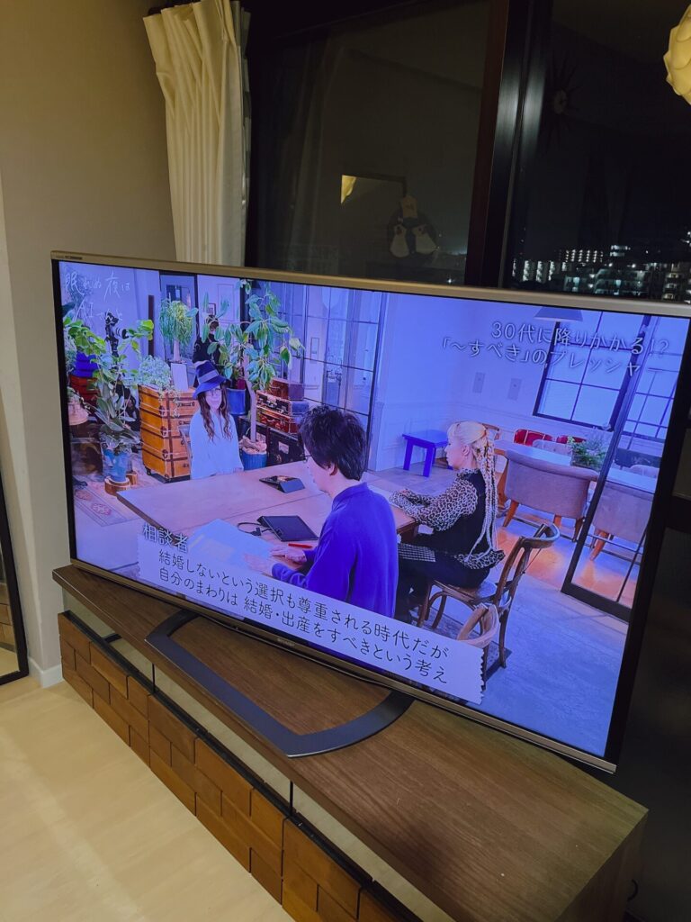 マンションの狭いリビングに鎮座する65型のでかテレビ。
